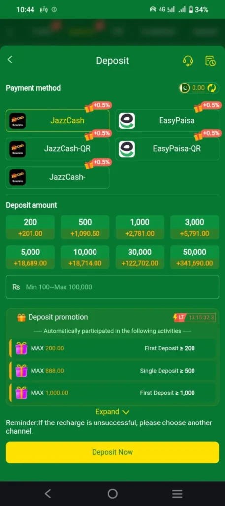- Select Jazz Cash or Easy Paisa as your withdrawal method.