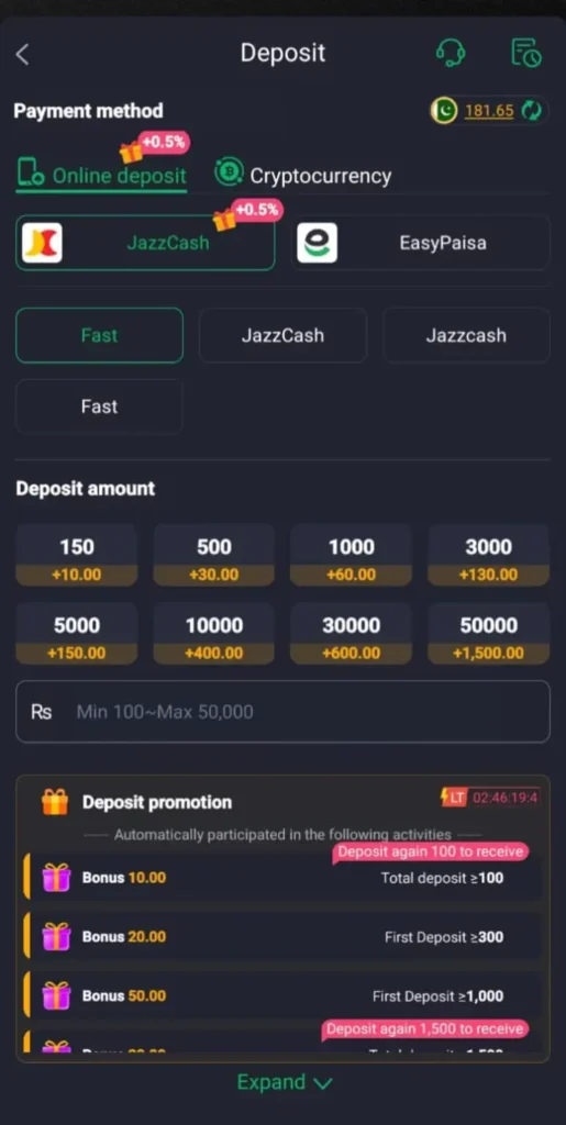In addition, the game is popular because its provide local payment methods, like easy paisa and jazz cash. Players easily deposit or withdraw their money without facing any issue. The game provides wide range of game for example, slots, card games, lottery games, and may more, in one place users do not need any extra thing to install.