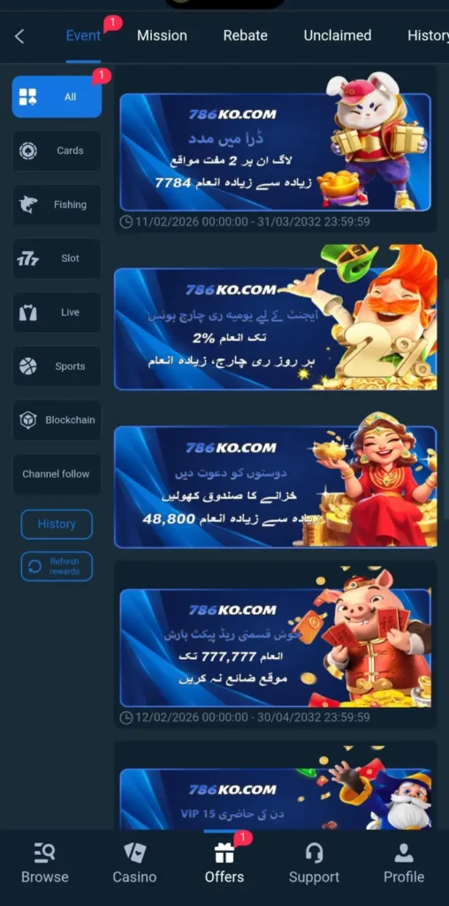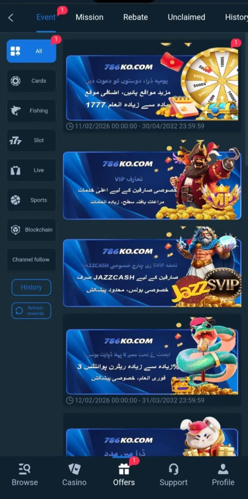 The 786KO game is really cool because it gives a lot of rewards and promotions to the people who play it. When you log in to the game every day you get a bonus for logging in. The game also gives you rewards when you invite your friends to play the game. If you do the tasks that the game tells you to do every day you can get more promotions. All these rewards and promotions, from the game help you get money in your game account.