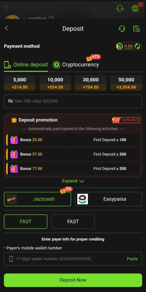 The best thing of this game is secure and safe payment methods for users. You can withdraw your cash through easy paisa and jazz cash and bank transfer.