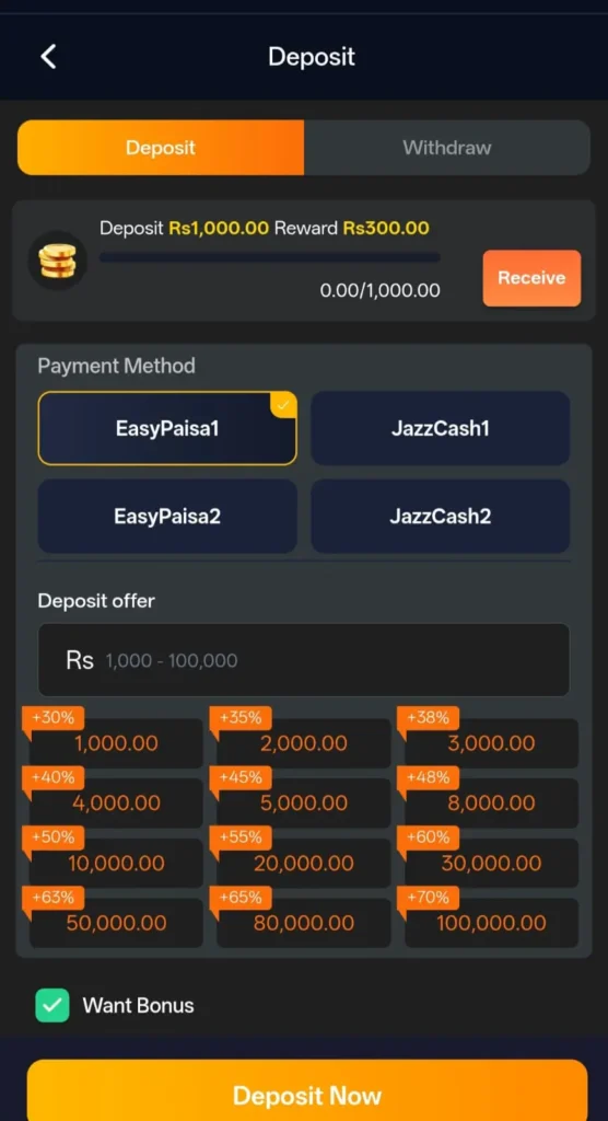 Deposits are easy and fast. Users choose a payment method, like easy paisa and jazz cash, enter the amount, and confirm. Withdrawals follow a similar process. Once requested, money is processed and sent to the selected account. Clear steps help users avoid mistakes.