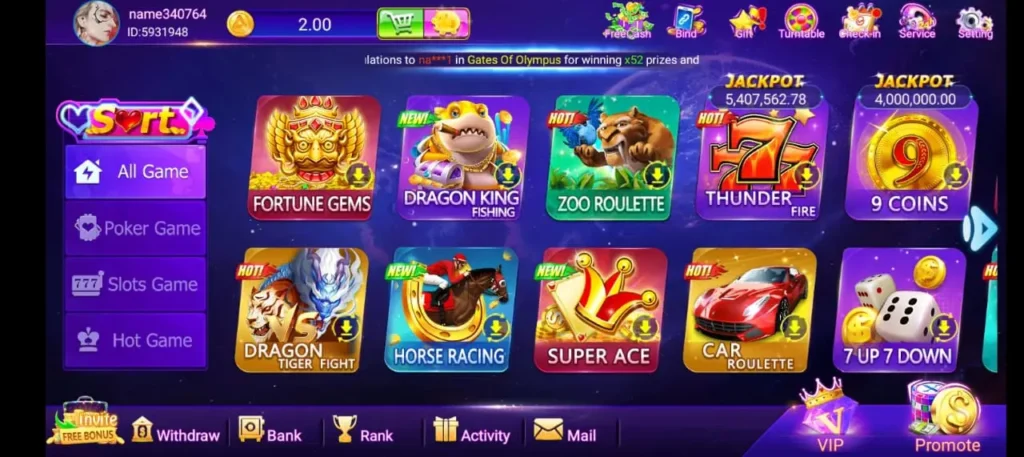 From high-calorie slots to strategic games and immersive live casino experiences, this game truly has it all. Whether you are in the mood to follow jackpots, test your poker skills, or try your luck in the fish shooting ground, it will ensure continuous excitement or fun with real money earning rewards games, which are as follows;