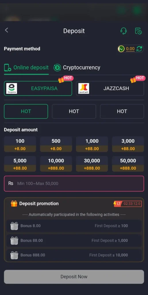 - The platform offers multiple local payment methods, including Jazz Cash, Easy Paisa account, and bank transfer.