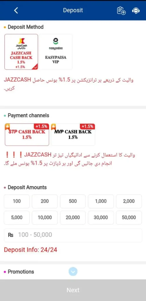 This application provides very fast transactions It also offers safety to their customers’ deposits and withdrawals of their winnings. Players can prefer you as the most powerful and fastest transaction in Pakistan, with the Easy Paisa and Jazz Cash accounts.