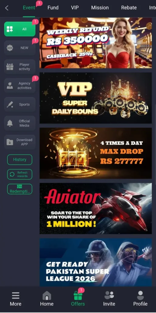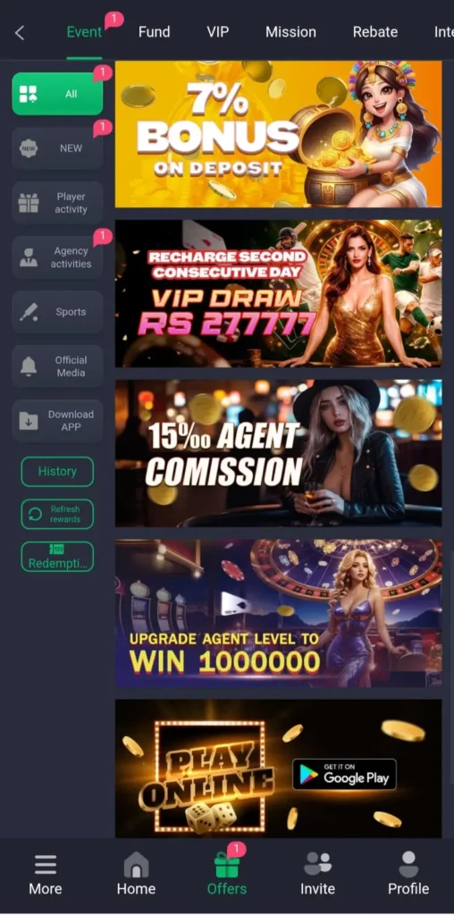 Additionally, the referral program allows players to invite friends and receive extra rewards when new users join the platform.