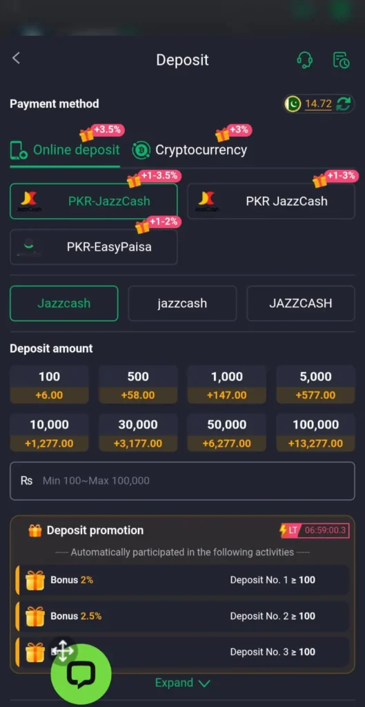 In addition, the platform provides safe and easy process foe deposit and withdrawals. Users use local payment system for example easy paisa or jazz cash and bank transfer. Because of local payment system users use it without any confusion.